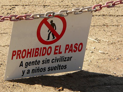 La idea de prohibir los niños sueltos es espantosa y aunque el cartel parezca extremo, la realidad es que en las grandes ciudades, los únicos niños que andan sueltos son los de la calle. Recomiendo estas reflexiones de Francesco Tonucci: