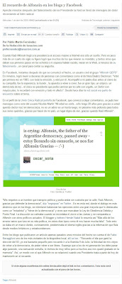 Gracias a los que me mandaron el link al artículo de La Nación donde citan las expresiones de tristeza que mi amigo Oscar Soria y yo, en relación a la muerte de R. Alfonsín.