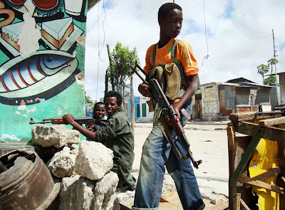 Un militante islámico somalí en el frente de combate, cerca del distrito de Hodan, en Mogadiscio el 23 de mayo de 2009. Los combatientes de Shabaab y Hezb al-Islamiya son los principales grupos insurgentes tratando de derrocar al presidente Sharif Sheikh Ahmed.
